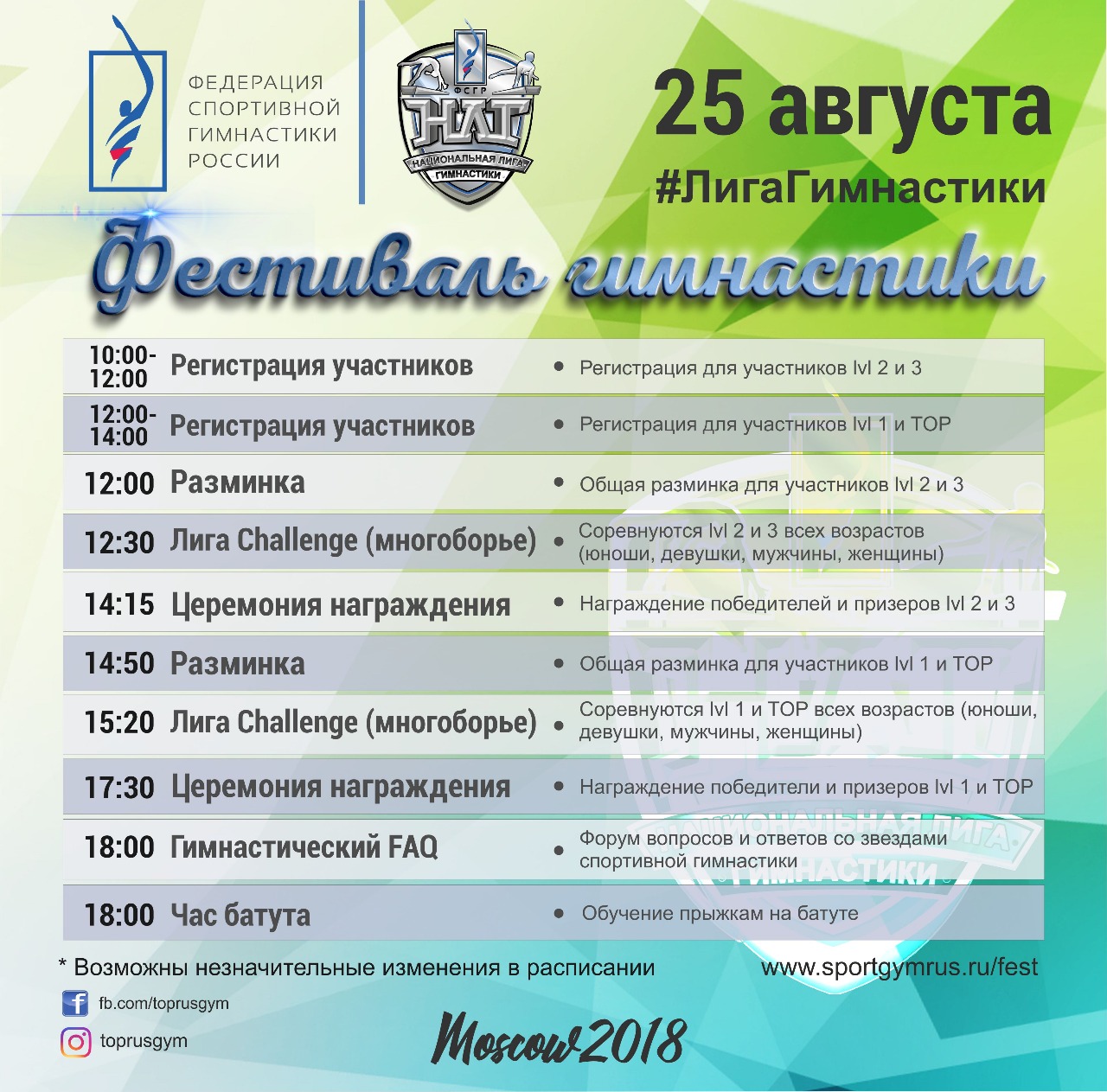 С 23 по 25 августа в рамках фитнесс-конвенции Russian Fitness Fair состоится уже второй по счету Всероссийский фестиваль «Лига гимнастики», который организовывает Федерация спортивной гимнастики России.